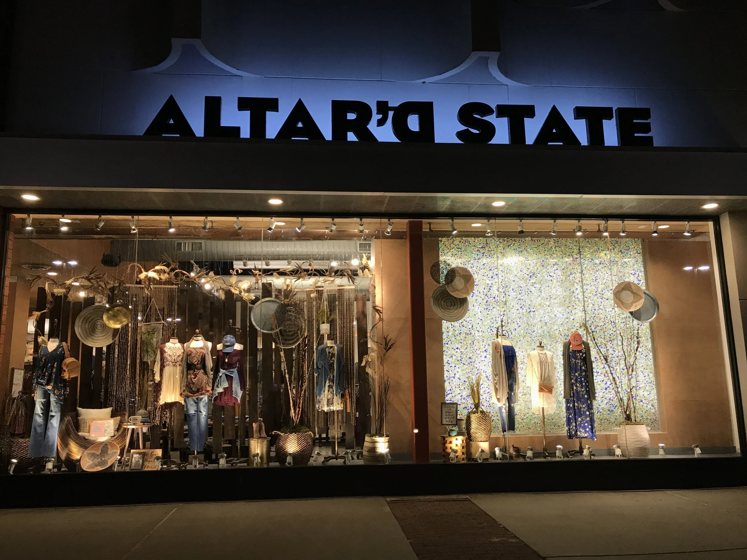 Window displays designed by Altar’d State, a clothing boutique with over 100 boutiques in thirty states. Displays executed in the Greensboro, NC location.